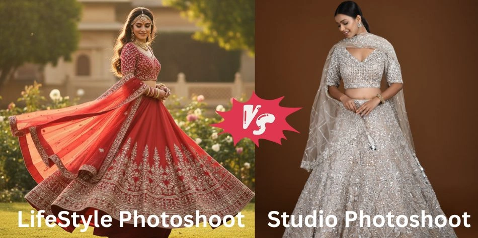 This comprehensive guide explains the difference between lifestyle vs studio shots for bridal lehenga photoshoot for eCommerce, which one converts better, how to structure a photoshoot, and the best practices for marketplaces. It also covers model shoot ideas, flat lay methods, and white background requirements, with expert inputs based on modern eCommerce standards in 2025.